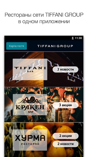 Также Вы будете первыми узнавать о текущих мероприятиях и действующих акциях, получать новости о последних событиях заведений TIFFANI GROUP, сможете забронировать столик в любимом ресторане.