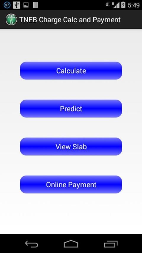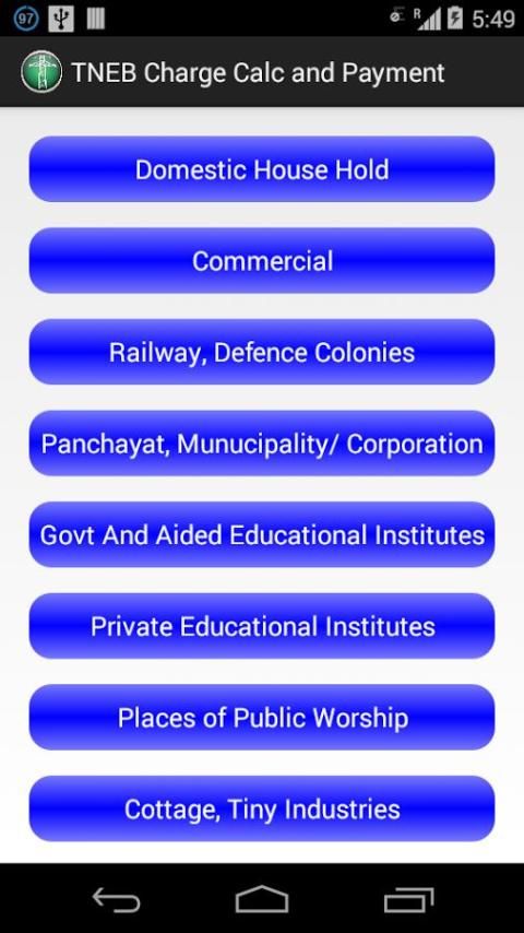 TNEB Charge Calc и Оплата OFFLINE приложение, которое помогает при расчете суммы счета на основе единиц потребляется. В настоящее время TNEB имеет различные ставки для различных категорий потребителей и расчетов ставок для каждого из ниже, доступны с помощью этого приложения.