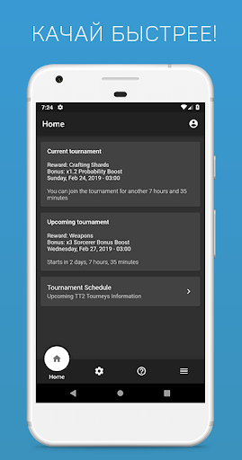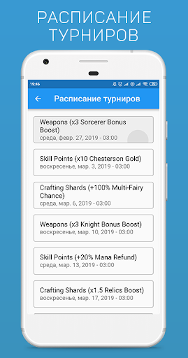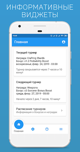 - Виджеты текущего (или прошедшего) и следующего турнира на главном экране;