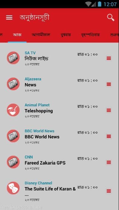 Чтобы удовлетворить этот уникальный потребительский необходимость любителей телевизионных Окончательный и Эфирное ТВ спутник здесь! Получить последние телепередач на всех основных телеканалах в Бангладеш. Получить Расписание 25+ самых популярных телеканалов. Все каналы (100+) список в ближайшее время. TV Guide Бангладеш предоставляет подробную информацию о всех выставках, фильмы, сериалы эфир в Бангладеш. Скачать TV Guide Бангладеш бесплатно (в течение ограниченного времени) и получить все, что нужно, чтобы сделать просмотр телевизора просто!