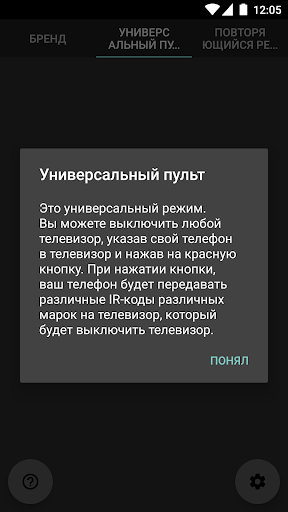 Это приложение позволяет отключить любой телевизор со встроенным ИК-бластера телефона.