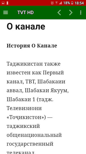 Таджикистан также известен как Первый канал, ТВТ, Шабакаии аввал, Шабакаи Якуум, Шабакаи 1 (тадж. Телевизиони «Тоҷикистон») — таджикский общенациональный государственный телеканал.