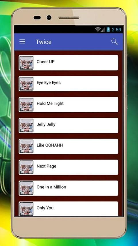 Нет День без музыки, потому что музыка не является частью человеческой жизни. музыка существует с древних времен, и теперь музыка развивается различными потоками и прогрессирует. в этом ДВАЖДЫ приложение, которое вы можете найти музыку, которую вы любите с самым лучшим качеством музыки. это приложение позволяет слушать TWICE музыку, которая нравится. все песни ДВАЖДЫ здесь с полными текстами и mp3, что очень круто и просто. с этим приложением, не трудная вещь, чтобы слушать музыку TWICE.