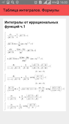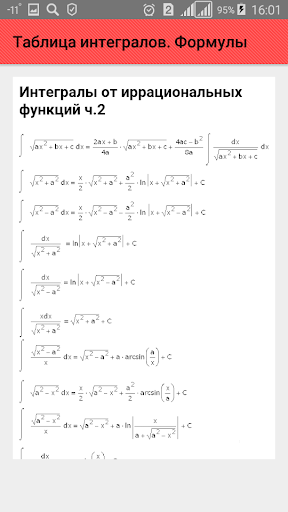 Таблица интегралов - основные формулы неопределенных интегралов.