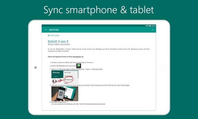 - В то время как у себя дома, синхронизировать с телефона на планшете, так что вы можете общаться и отвечать с планшета. Таблетка для WhatsApp.
