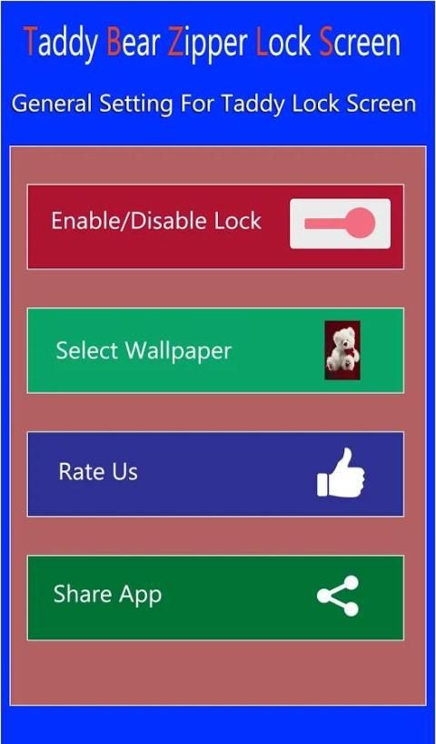 Teddy Bear Zipper Блокировка экрана имеют высоко качество удобный интерфейс. Это приложение не требуется никакого пароля или PIN-код, чтобы разблокировать устройство.