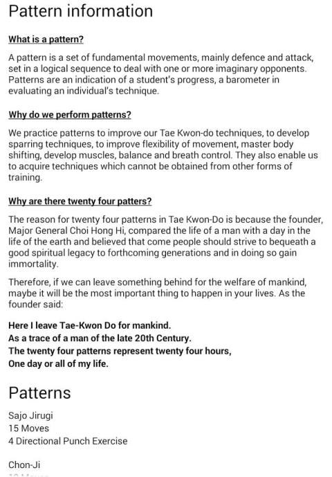 Для тех студентов, которые хотят знать больше, есть дополнительные опции для викторины и карточки, которые содержат материал, из белого пояса к вашему текущему пояса.