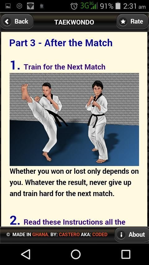 Он может обучить вас от базового уровня до самого высокого уровня в тхэквондо с наградой шаг за шагом обучающие программы, Видео Обучение, Лучший тхэквондо Фотография Stances, обучение советы, тхэквондо Новости и Турниры плюс многое другое победы.