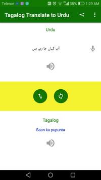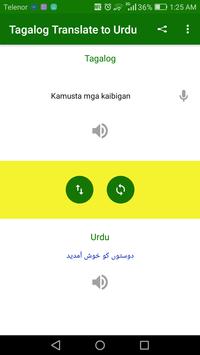 Translate Tagalog to Urdu and Urdu to Tagalog with this FREE app. It can translate text, words and sentences in split seconds. It is like a dictionary and used for words meaning and accurate pronunciation.