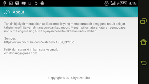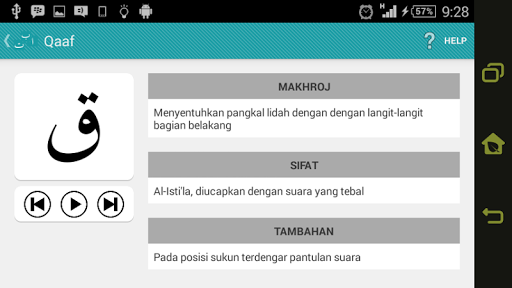 Hijaiyah Tahsin - это мобильное приложение, которое облегчает пользователей изучать буквы хиджайя повсюду и в любое время.Показать правила произношения для каждой буквы Hijaiyah вместе с записями для упражнений.