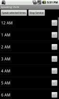 Try the amazing Talking clock. If you think that sometime you forget to look at the clock when you are busy in your work, then this is the best suited application for you. It reminds you about the time at every specific interval. You do not need to do anything, just start this application and then this application will tell you the time. Easy to use and very useful application. How to use: -Start the application -Select the time you -Press Speak selected time -Press Home to minimize the application
