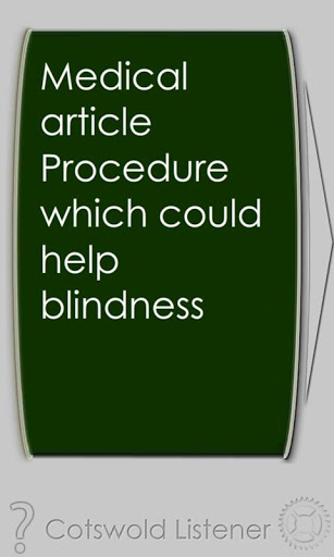 Gesture based auditory app for the blind userThe mobile app has been developed for the Cotswold Listener to deliver talking newspapers to blind or partially sighted uses in the Cheltenham and north Cotswolds Gloucestershire UK region. The app has been implemented to support the content of other Talking Newspaper organisations in any locality and it is hoped that other providers will participate in its use in the near future. Currently, many of these organisations deliver content using CD, USB sticks or audio tape, with all the accompanying burden of reproduction of this media and physical delivery to their listeners.This app downloads newly recorded news and magazine articles from the Cotswold Listener. Each article is accompanied by a text headline for the partially sighted and a spoken headline for the blind user. The user can then select to listen to the full article, or move onto another story.All articles are saved, so the user is not restricted by the need for a network connection. Articles older than 30 days are automatically deleted.Stories can be paused resumed at any time, and listened to in a continuous loop.To support use by totally blind users, the app utilises the accelerometer g sensor to allow the user to navigate through articles by tilting the device left to right, and up and down. Partiallysighted uses are supported by very large text and the ability to select from a range of textbackground colour contrasts. The app can also be navigated by touchgesture alone if preferred.