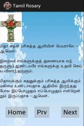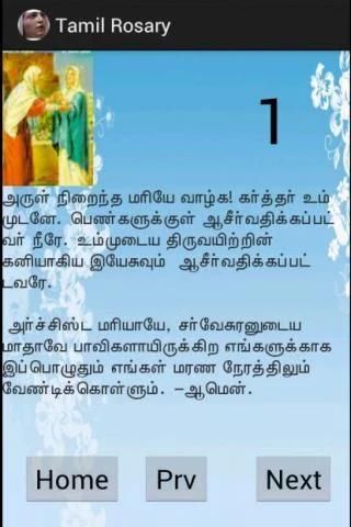 Это приложение является виртуальным Розария на тамильском языке. Это приложение отображает тему Розария на тамильском языке в зависимости от дня (Ex, суббота - Happy Type и т.д.). Это приложение также подсчитывает Богородица и отображает полную молитву до конца.