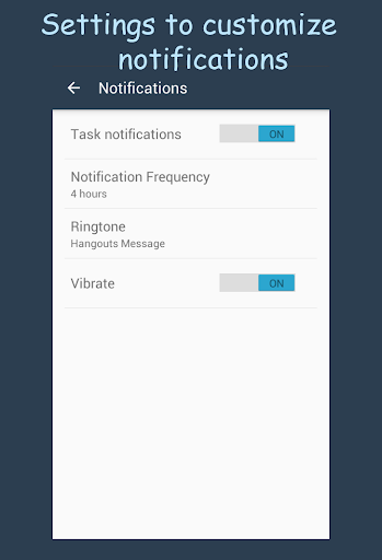 Приложение Task позволяет вам указать частоту уведомлений с опцией, чтобы позволить телефон вибрацию, пока показывая уведомления о задачах. Приложение Task также позволяет вам выбрать рингтон, который вы хотите поставить для уведомлений.