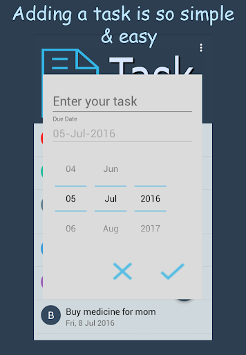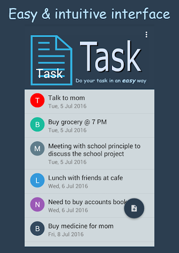 * Легко Интерфейс для создания задачи, просто поставив задание и срок.