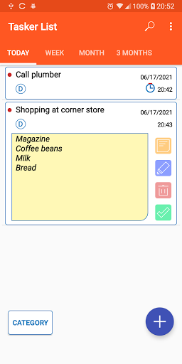 Weekly, ежемесячно и 3 месяца вкладки покажут задачи под этими сроками. CR> TaskerList позволяет создавать различные категории, основанные на ваших потребностях планирования.