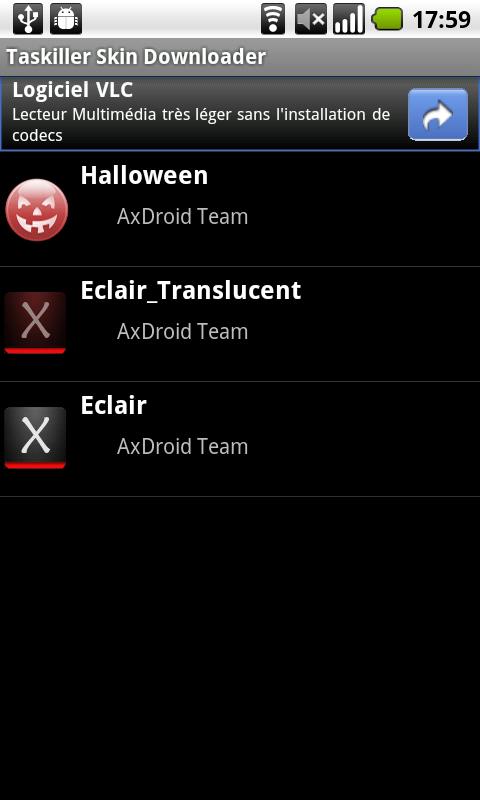 Taskiller skin Downloader is a plugin for Taskiller by AxDroid LLC.With this plugin you will be able to download skins on AxDroid's servers.This app is not visible in the applications list on android ONLY USABLE FROM TASKILLER. (free or full)Recent changes:Network improvementscontent rating: Everyone