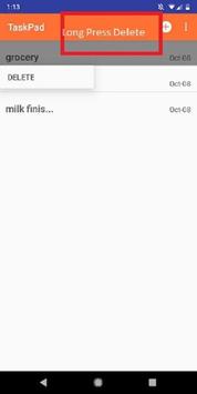 Even you can see the delete option on long press of your task and on single time clicking