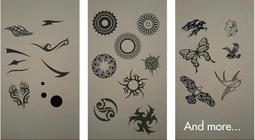 Выбирайте из более чем 200 татуировкой, добавить их к вашим фотографиям и делиться ими