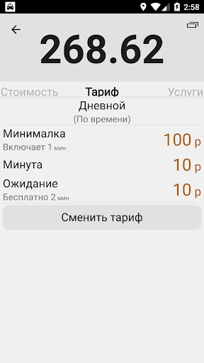 Главная фишка нашего таксометра - вы можете менять тариф на ходу, например начав путь в городе включаете городской, а как вы выехали за город, можете переключиться на загородный. Только учтите, что при смене тарифа не все параметры меняются, например параметры "минималки" остаются от стартового тарифа.