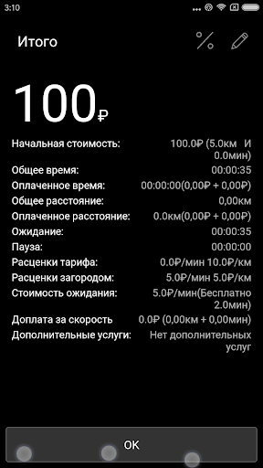 В конце поездки таксометр выдаст развернутый отчет по стоимости самой