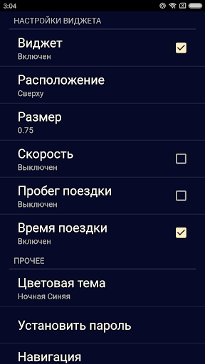 скорость, пробег, время. Виджет можно подвинуть пальцем.