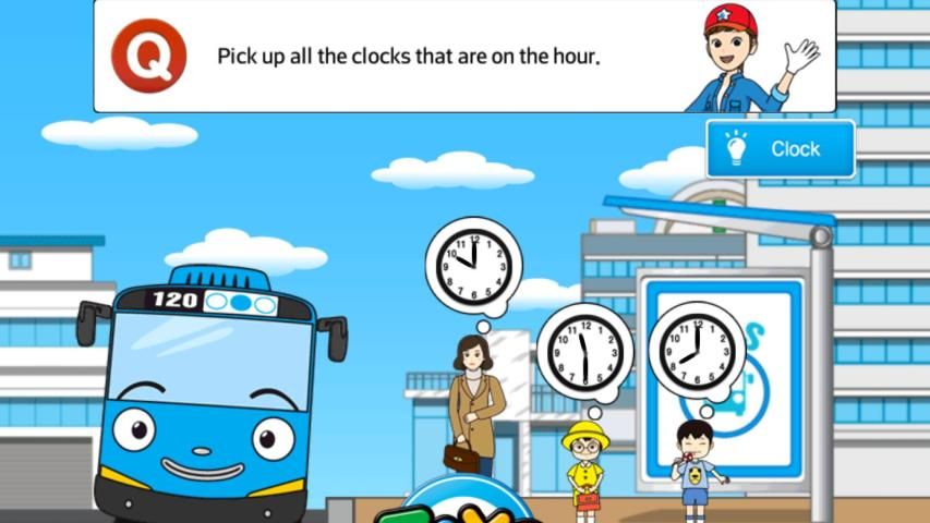 Вы можете играть с цифрами, форм и часы, выбирая автобусный маршрут, когда вы приедете на автобусных остановках.