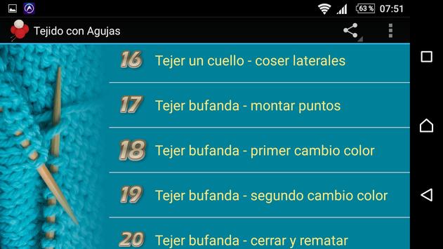 Tejer con lana es un arte que se practica desde hace miles de años atrás. Y en esta aplicación usted aprenderá de manera sencilla cómo tejer con agujas o agujetas desde los pasos más sencillos hasta los acabados.
