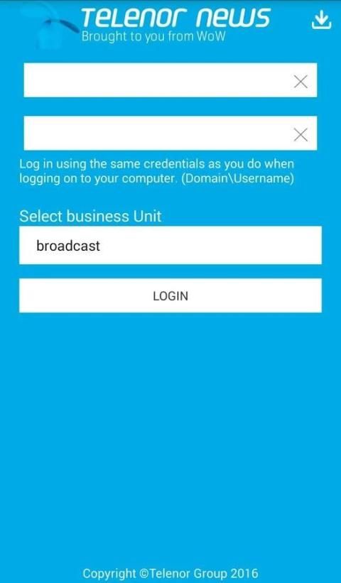 Теленор News App для сотрудников Telenor и требует Employee ID для доступа к приложению.