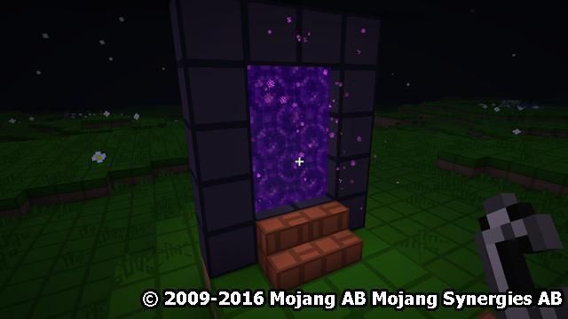 Нажмите по нижнем правом или нижнем левом угловом блоку зажигалкой, чтобы активировать MCPE портал.