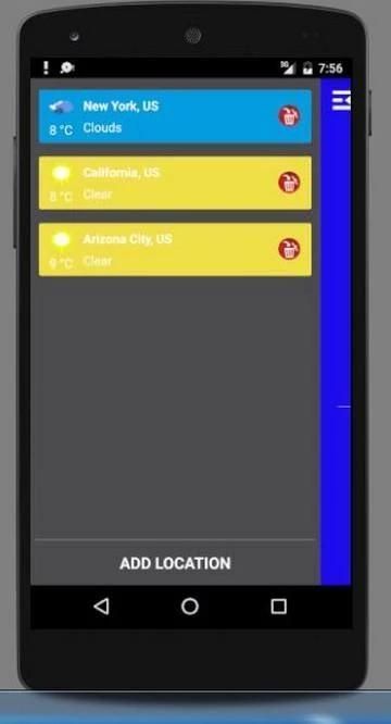 - Добавление и удаление новый город (верхнее меню на левой стороне экрана).