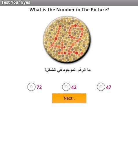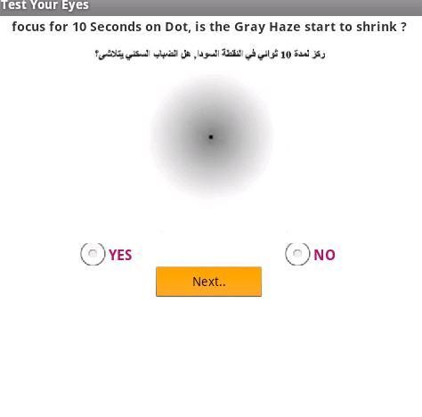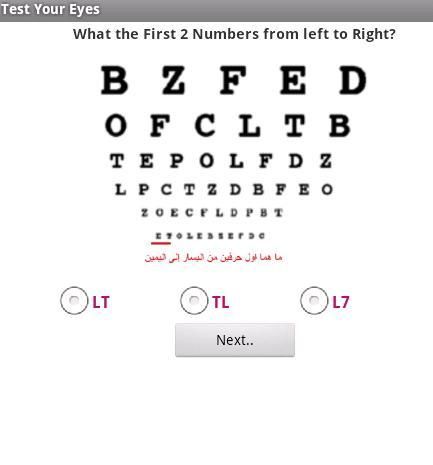 Программа измерения остроты зрения и ясность видения, только закройте глаза и удаление устройства от ваших глаз в начале экзамена, с наилучшими пожеланиями к Вам здоровья и благополучия.