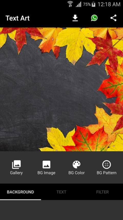 • Вы можете сохранить изображение в галерею с нажмите кнопку скачать иконку меню в верхнем меню Text Art приложений. Сохраненное изображение будет отображаться на вас галерее, и вы можете найти сохраненный файл в папку \ Pictures \ Text Art.
