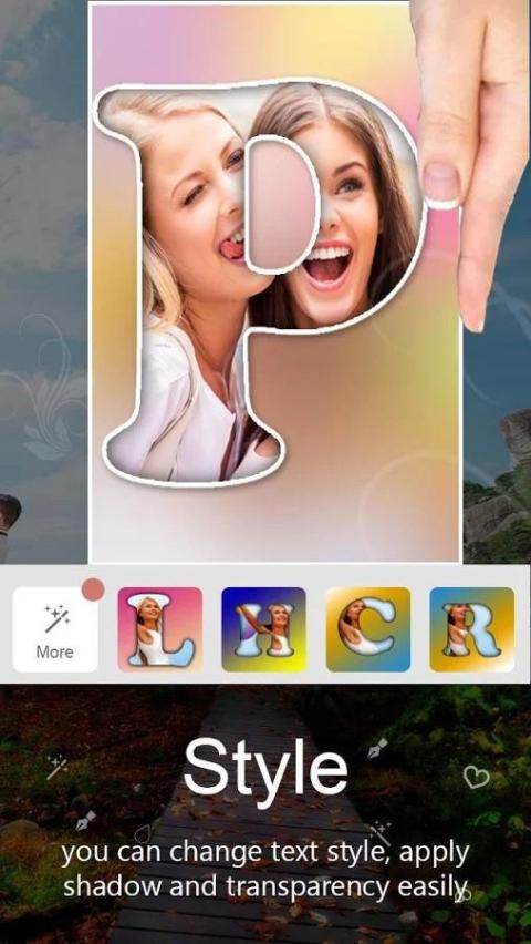 Текст Photo Maker является славным фотоколлаж. Текст фотоколлаж Дай вам другую фотографии стиля текста, алфавиты стилей, значные номера стили, фоновые текстуры, наклейки с эффективностью до Фотоэффектов в редакторе текст Фото.