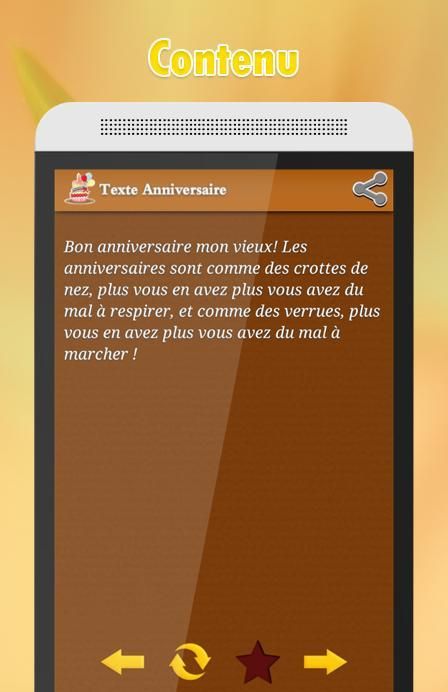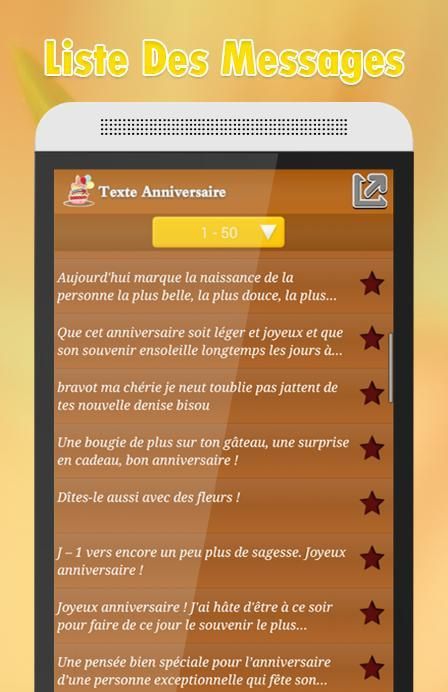 Скачать официальные версии русских приложений из 9apps сейчас. 20,000+ пользователи скачали последнюю версию Texte Anniversaire в 9Apps бесплатно каждую неделю! Это приложение было очень смешно. Это горячее приложение было выпущено в 2017-06-20. Вы можете приходить в 9Apps, чтобы узнать много информаций.