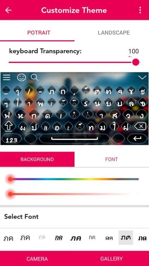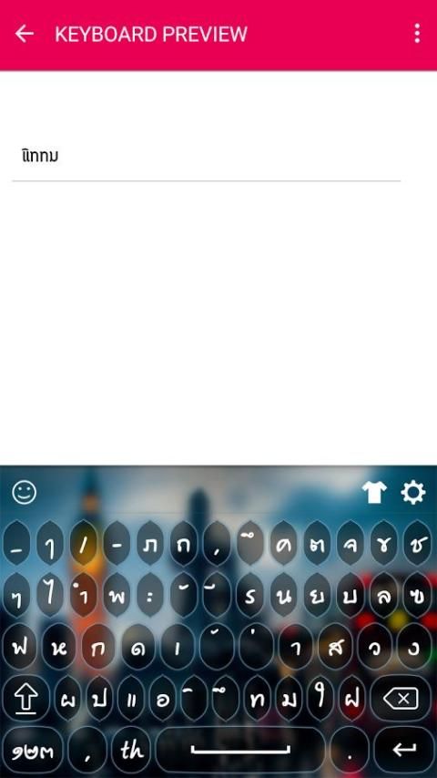 Тайская клавиатура предназначена в различных красивых тем, выбрать свою собственную тему, что бросается в глаза. Изменение клавиатуры на английский язык, числовые и специальные символы.