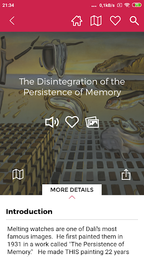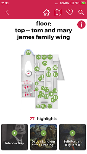 WayFinding и GPS-карта, вы сможете изучить каждый дюйм изысканного пространства музея Дали. Тематические и виртуальные туры: Исследуйте музей Дали из любой точки мира только с краном пальца. Узнайте больше о художнике и его работах через туры по постоянной коллекции, Дали в деталях, Dali Decoded и многое другое.