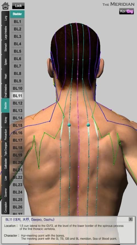 Каждый акупунктурные точки и меридианы показаны различные цветовые форматы, так что легко видеть и понимать.
