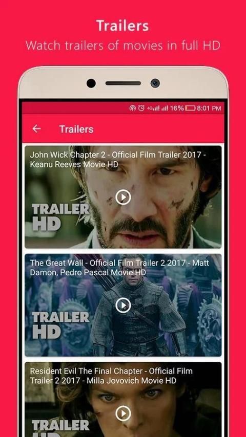 Множественные видео ролики и трейлеры будут доступны для каждого фильма с полным качеством HD. Все трейлеры официально опубликованы и очень легко смотреть все видео ролики и трейлеры с помощью кино приложение.
