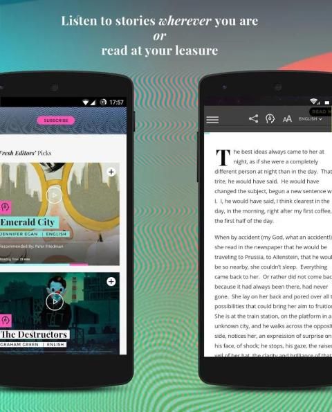 Великий почерк это наша страсть и короткие истории наша специальность. Мы читаем день и ночь, чтобы принести Вам куратором, подобранный библиотеку самых классных современников, и большинство авангардные классики. Grittiest, большинство шумиха решений, выворачивающий фантастики со всего мира, упакованные с аудио-версии и обновляется еженедельно, бесплатно.