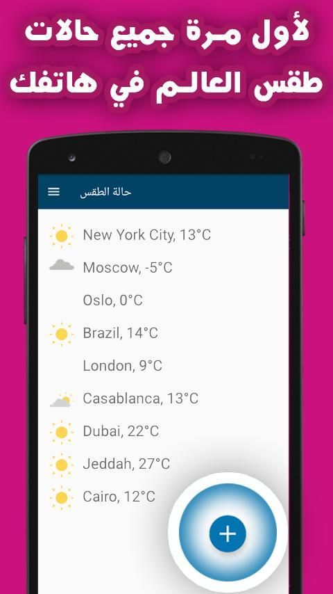 9Apps поставит бесплатные приложения для андроид. 20,000+ пользователи скачали последнюю версию حالة الطقس اليومي - اخر إصدار в 9Apps бесплатно каждую неделю! Несмотря на то, что наверно, вы не обращались внмание к нему в первый взгляд. Это горячее приложение было выпущено в 2016-11-24. Больше похожих и горячих приложений здесь тоже.