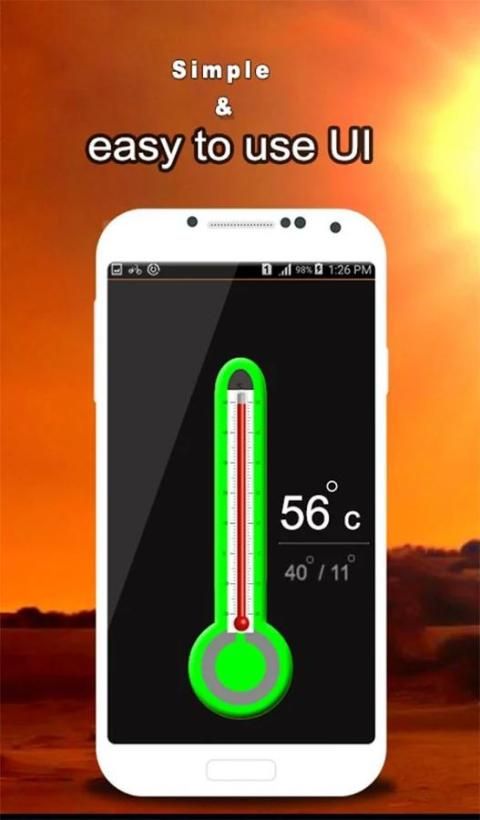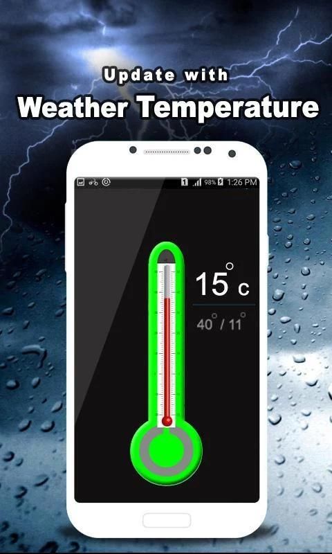 Термометр Температура испытаний показывает текущую температуру, это приложение работает на основе датчика температуры окружающей среды в Android. Так что ваше устройство должно иметь такую поддержку для датчика температуры, чтобы показать температуру в настоящее время. С помощью этого приложения вы имеете текущую температуру на всех сразу.