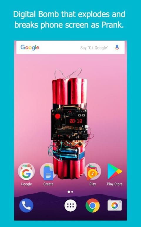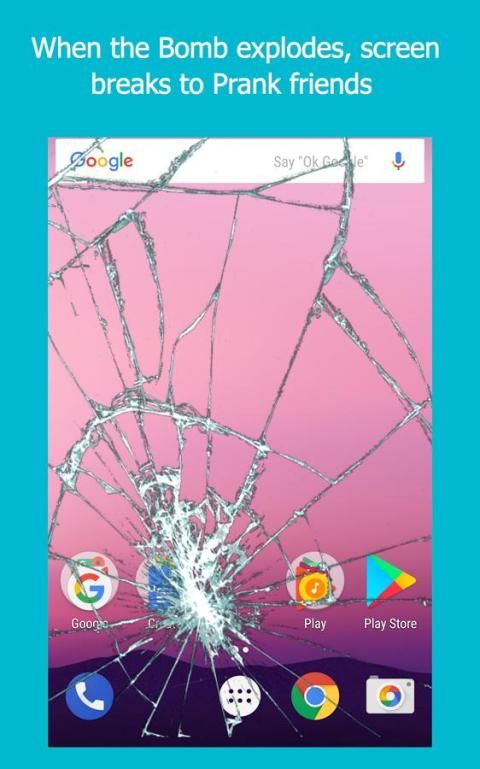 Шутки друзей с Time Bomb взрывающиеся в вашем телефоне разрывной экране телефона в качестве Prank. Вы можете удалить сломанный экран, нажав на уведомления.