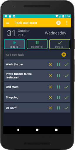 Вы хотите лучше организовать себя и ничего не забывать? Это интуитивно понятное приложение позволяет просто управлять списками задач просто. Добавьте задачу, при необходимости приостановитесь, что если вы хотите закончить задачу позже.