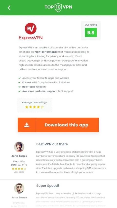 Top10VPN Отзывы приложение предлагает простые обзоры наиболее популярных сервисов VPN по всему миру.