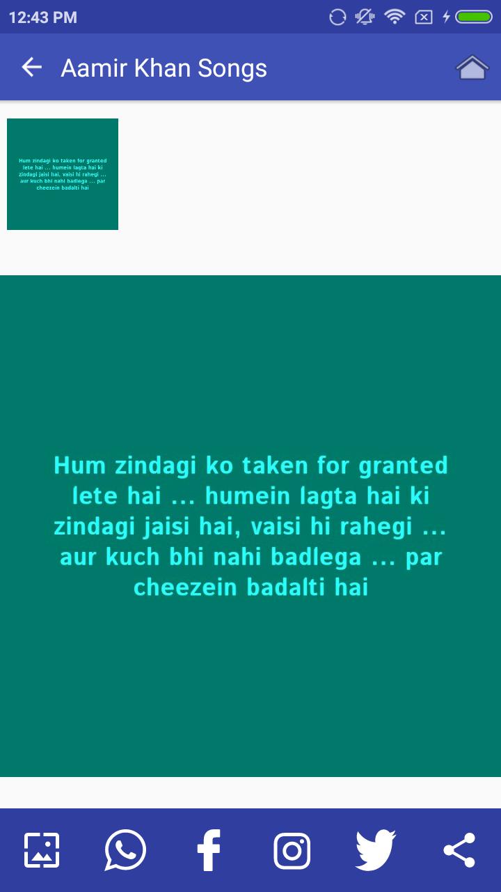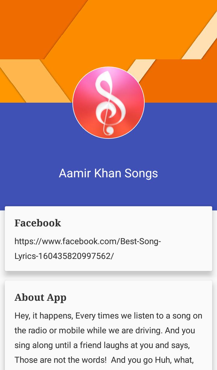 Amir Khan Songs and Lyrics is best app for songs lover. This app is totally free and free to use forever.
