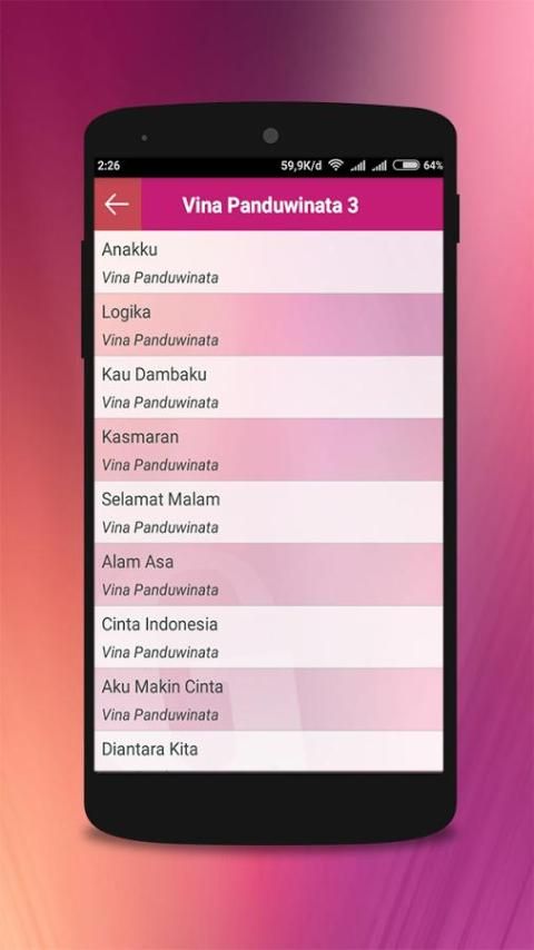Лучшие песни приложения Вина Пандувината можно скачать бесплатно на вашем PlayStore. Лучшие песни Вино Пандувинат приложение сделано для поклонников Top Songs Вины Пандувината по всему миру. Надеюсь Приложения Лучшие песни Вина Пандувината неурядицы могут сопровождать вас все.