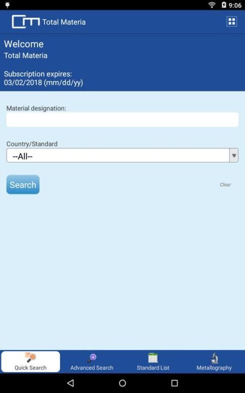 • Если это ваш первый визит Total Materia, то вы можете загрузить приложение, чтобы ввести бесплатную пробную 5 сеансов в базе данных