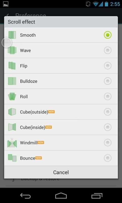 - Предпочтение -> прокрутки эффекты -> Cube (снаружи), Куб (внутри), Мельница, отказов