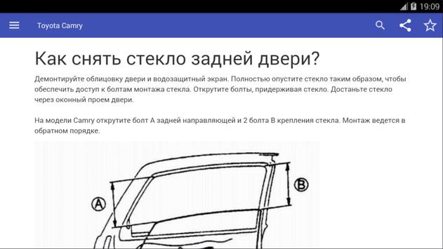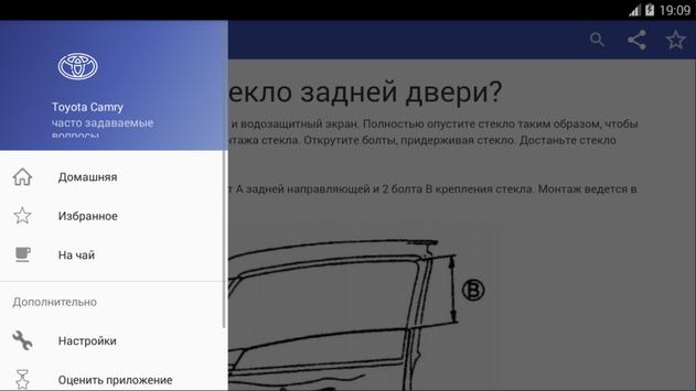 В приложении Toyota Camry FAQ собраны наиболее часто встречающиеся вопросы возникающие у владельцев во время эксплуатации данного автомобиля и ответы на них.
